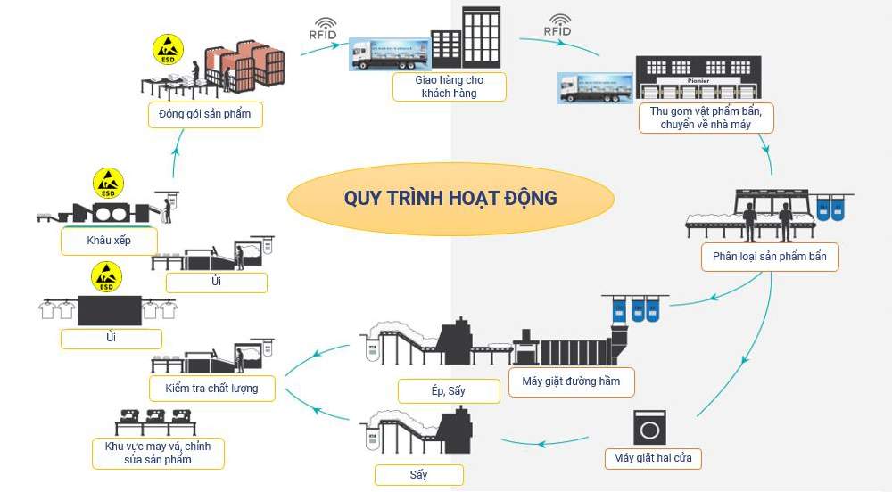 Để đảm bảo hiệu quả hoạt động của nhà máy giặt ủi công nghiệp, việc thiết lập một quy trình giặt ủi chuẩn và tối ưu là điều cần thiết. Quy trình giặt ủi công nghiệp cơ bản bao gồm các bước: phân loại, giặt, ép (vắt), sấy, ủi, xếp, đóng gói và giao hàng. Tùy theo từng cơ sở giặt ủi, các bước này có thể được phát triển và cải tiến để nâng cao chất lượng dịch vụ. Dưới đây là quy trình giặt ủi công nghiệp chi tiết cùng những lưu ý quan trọng.