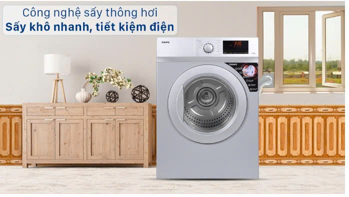 Công nghệ máy sấy công nghiệp quần áo ngày càng phát triển, đáp ứng nhu cầu sấy khô nhanh, tiết kiệm điện và bảo vệ sợi vải. Trong đó, công nghệ sấy thông hơi là một trong những giải pháp phổ biến và hiệu quả. Đây là công nghệ hoạt động dựa trên nguyên tắc làm nóng không khí, sau đó thổi vào lồng sấy để làm bay hơi nước từ quần áo. Hơi nước sau đó được đưa ra ngoài qua ống thoát khí, giúp quá trình sấy nhanh chóng và tiết kiệm điện hơn so với các công nghệ khác.
